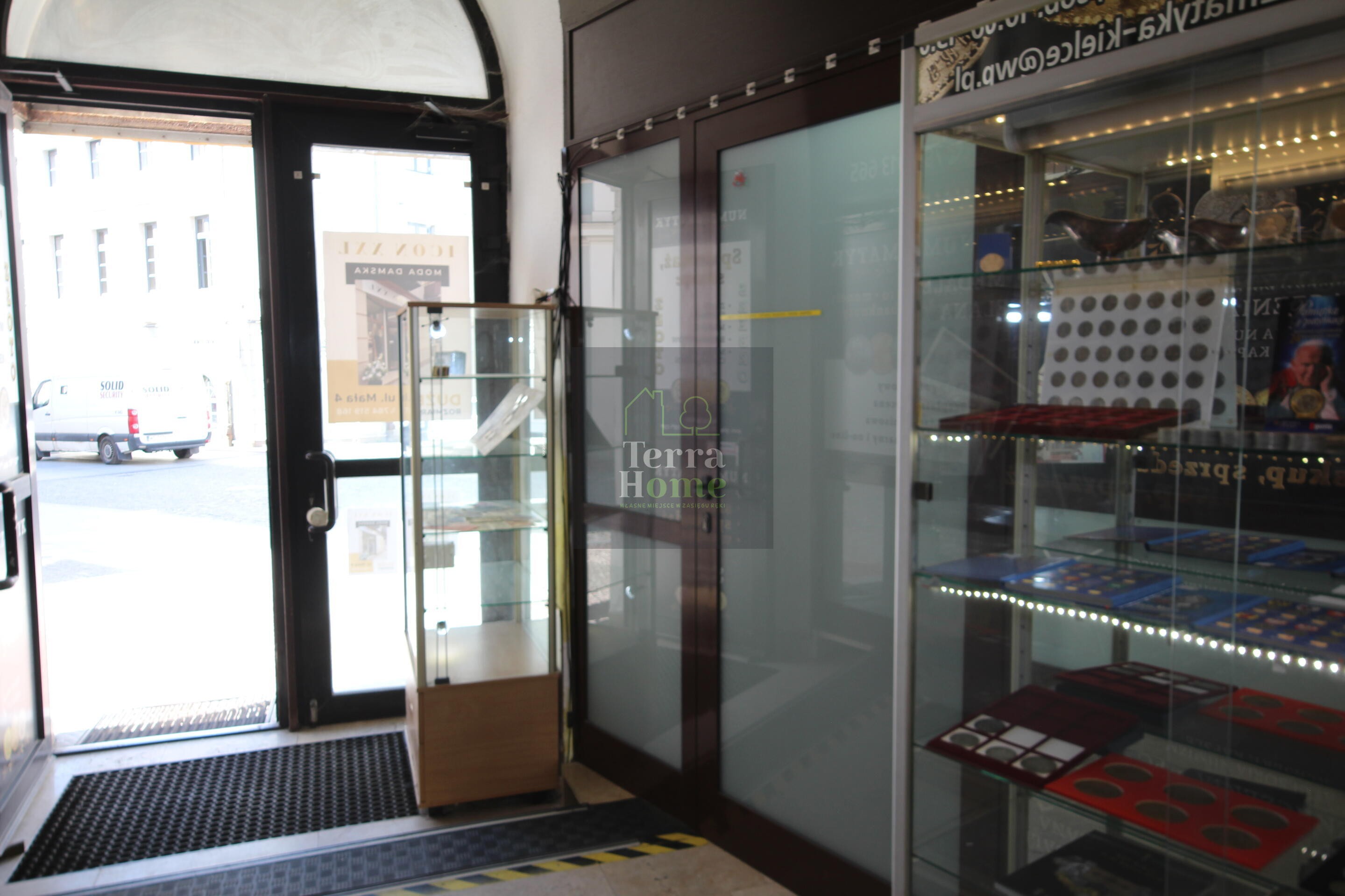 Duże witryny wystawowe. Jedno wejście do lokalu. Ogrzewanie gazowe, woda miejska .