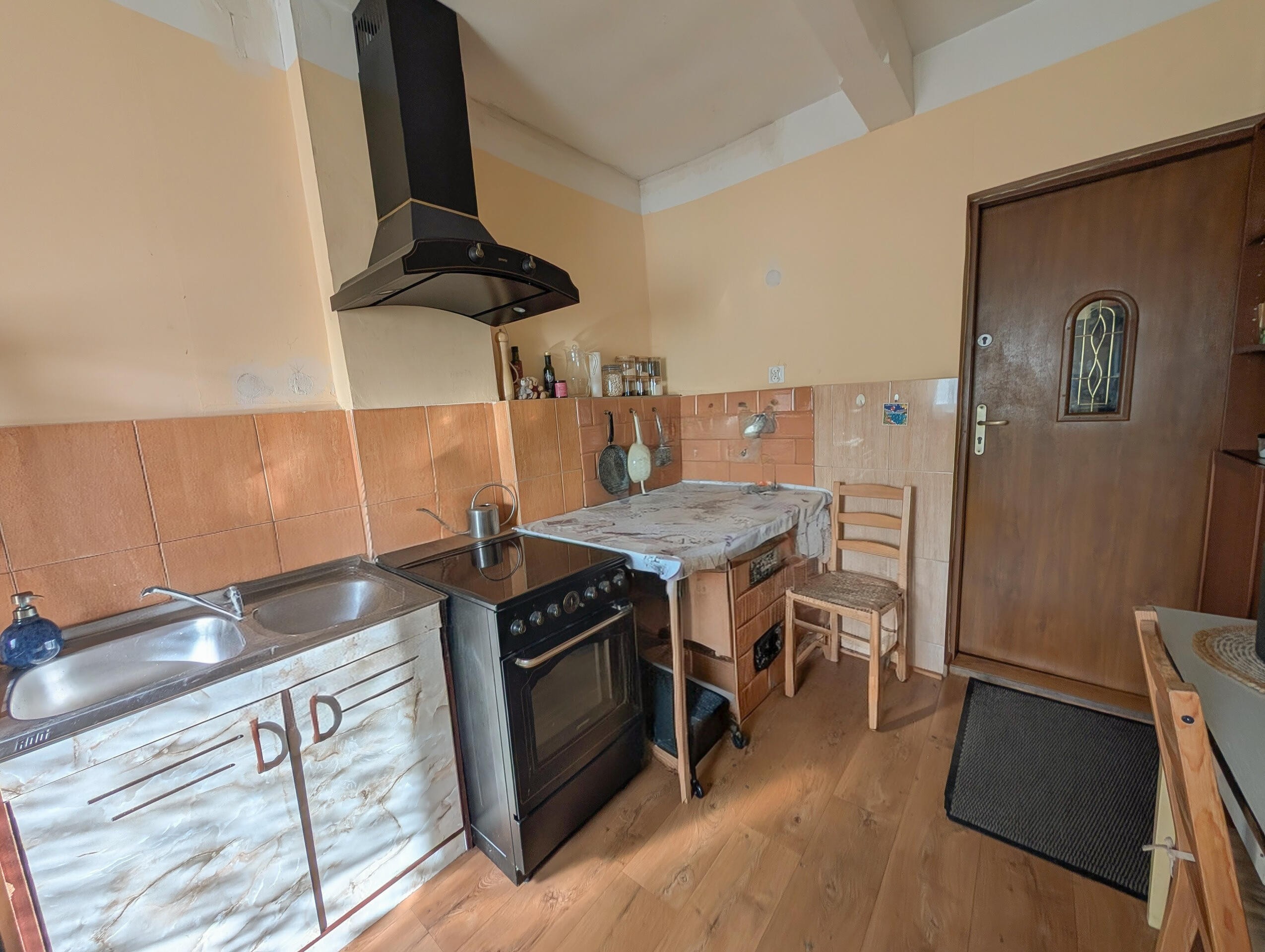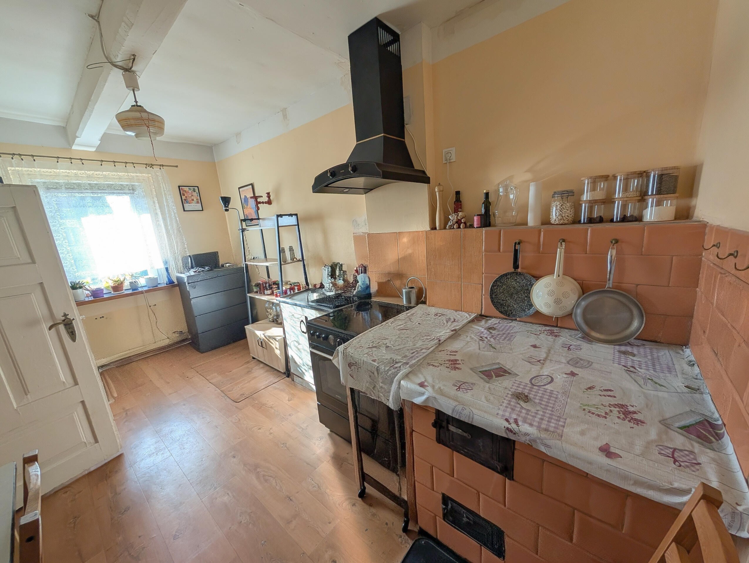 - Kuchnia kaflowa z kominem spalinowym, którą można przerobić na kominek.