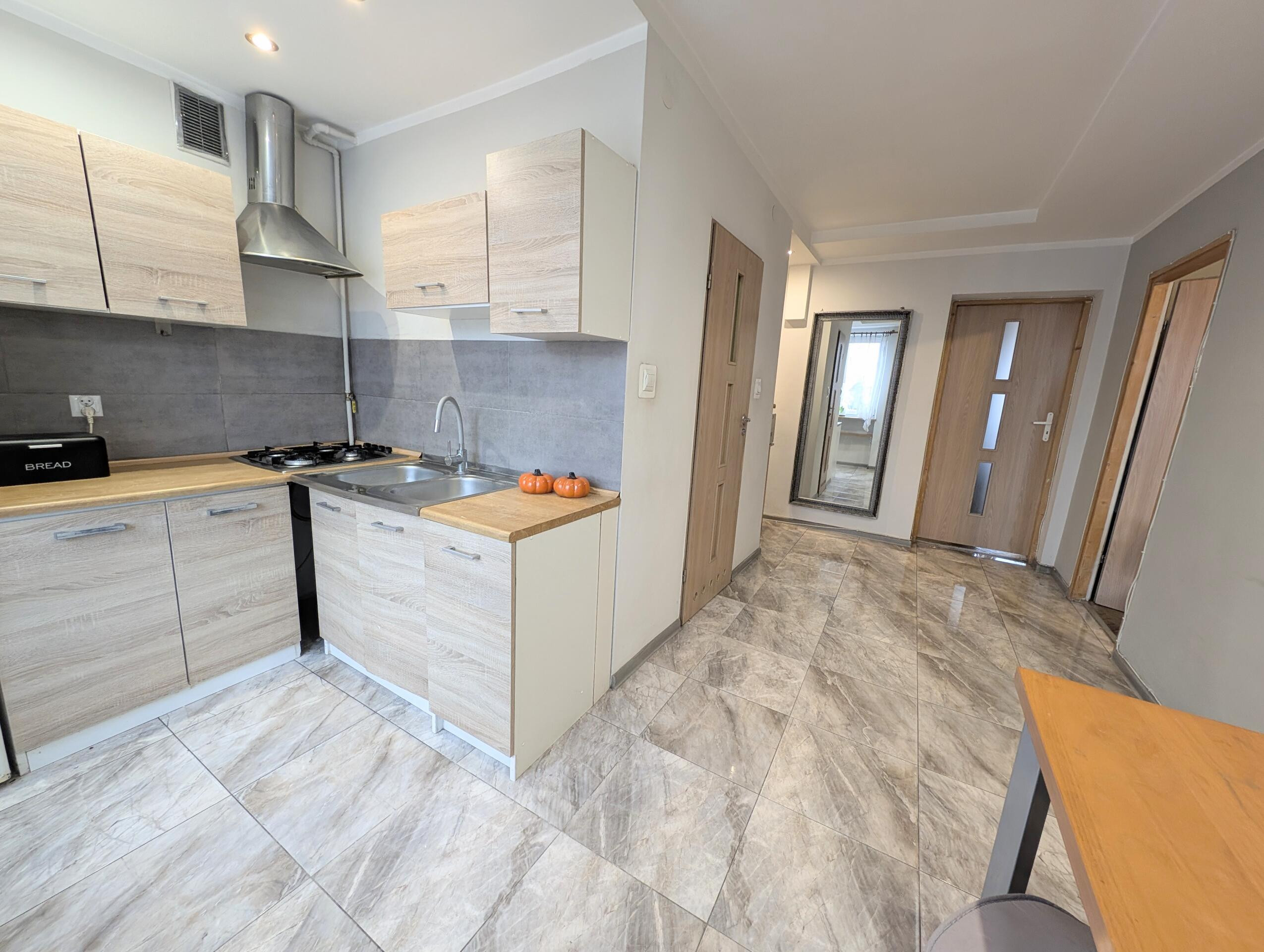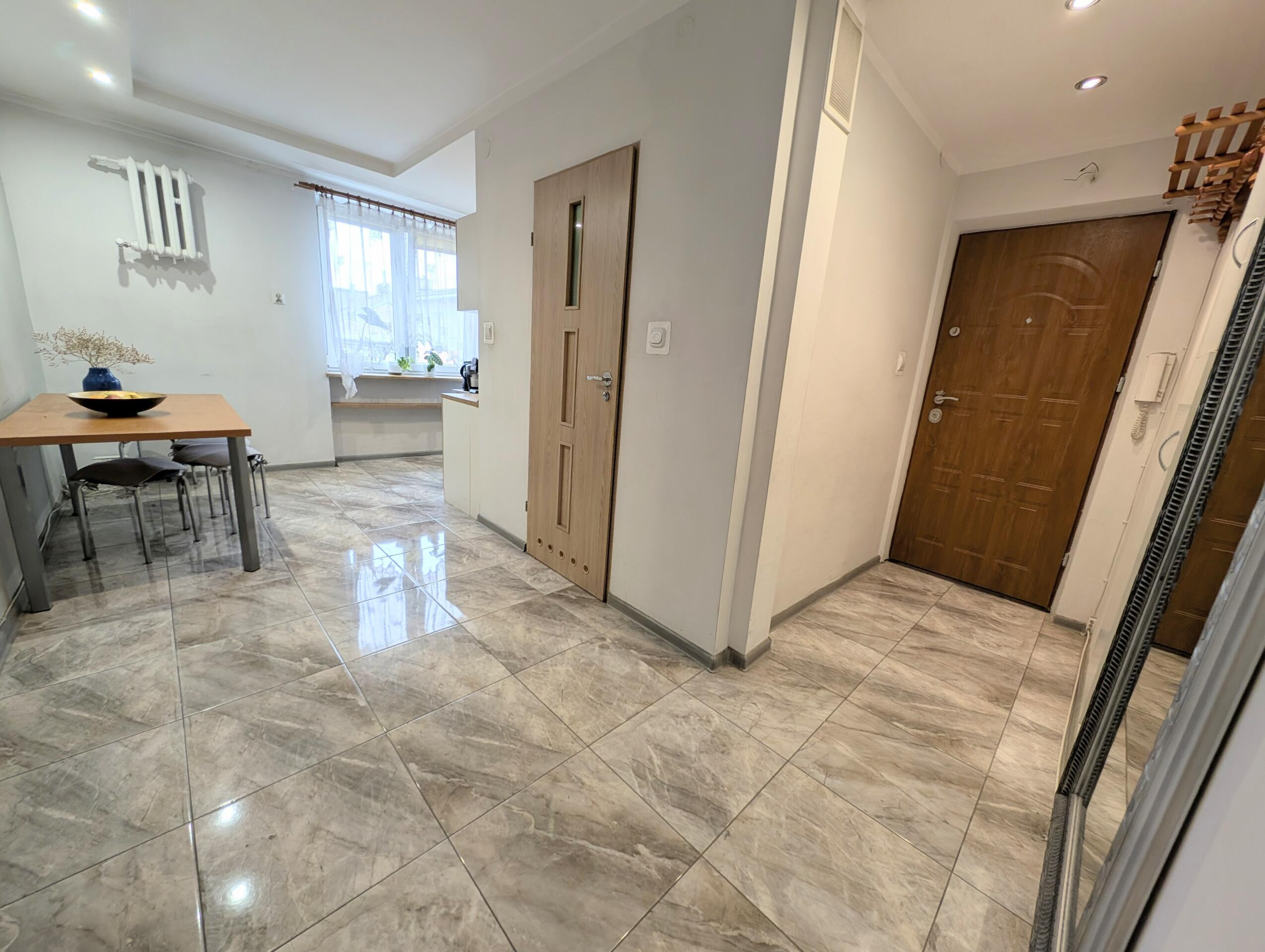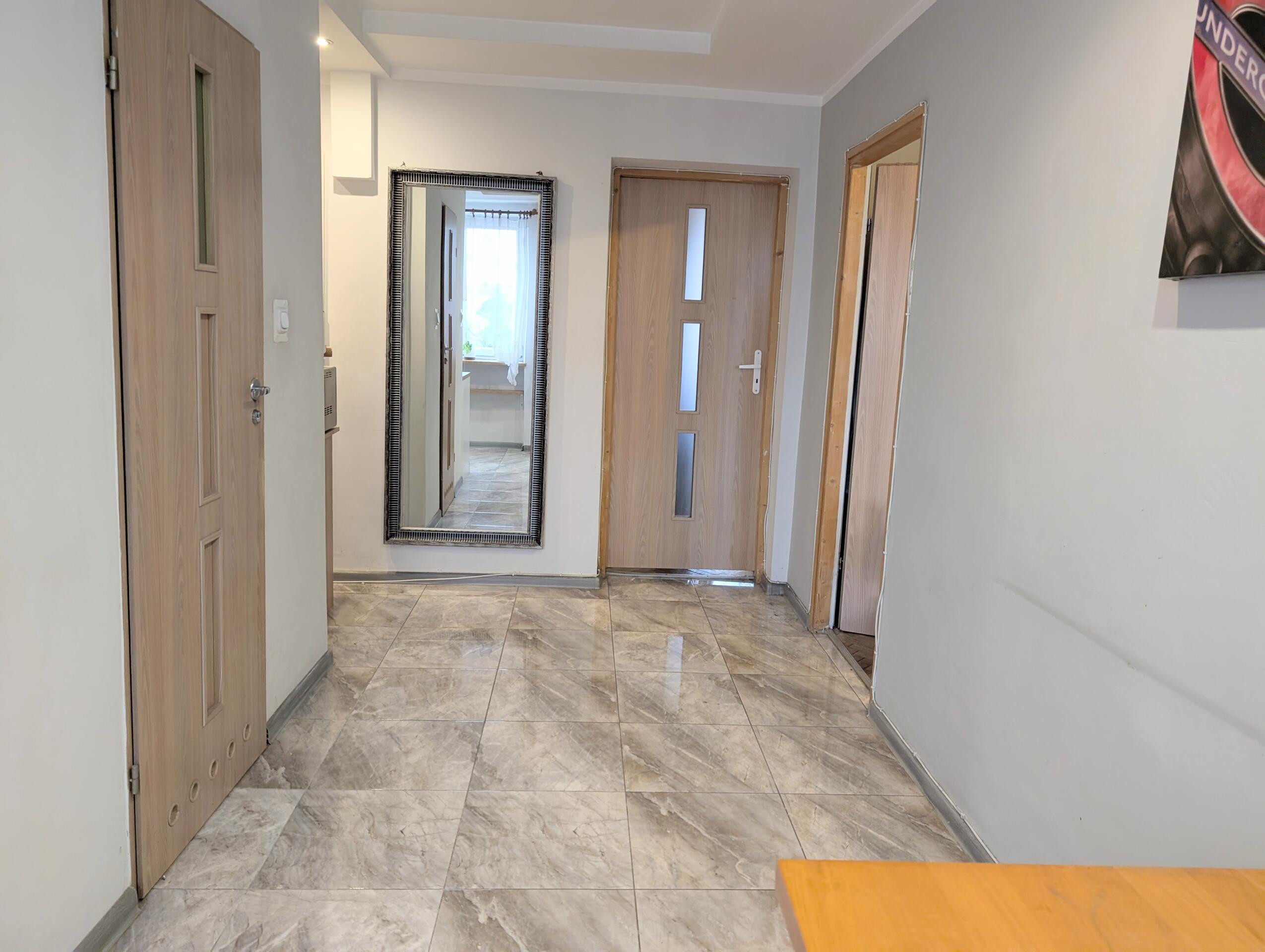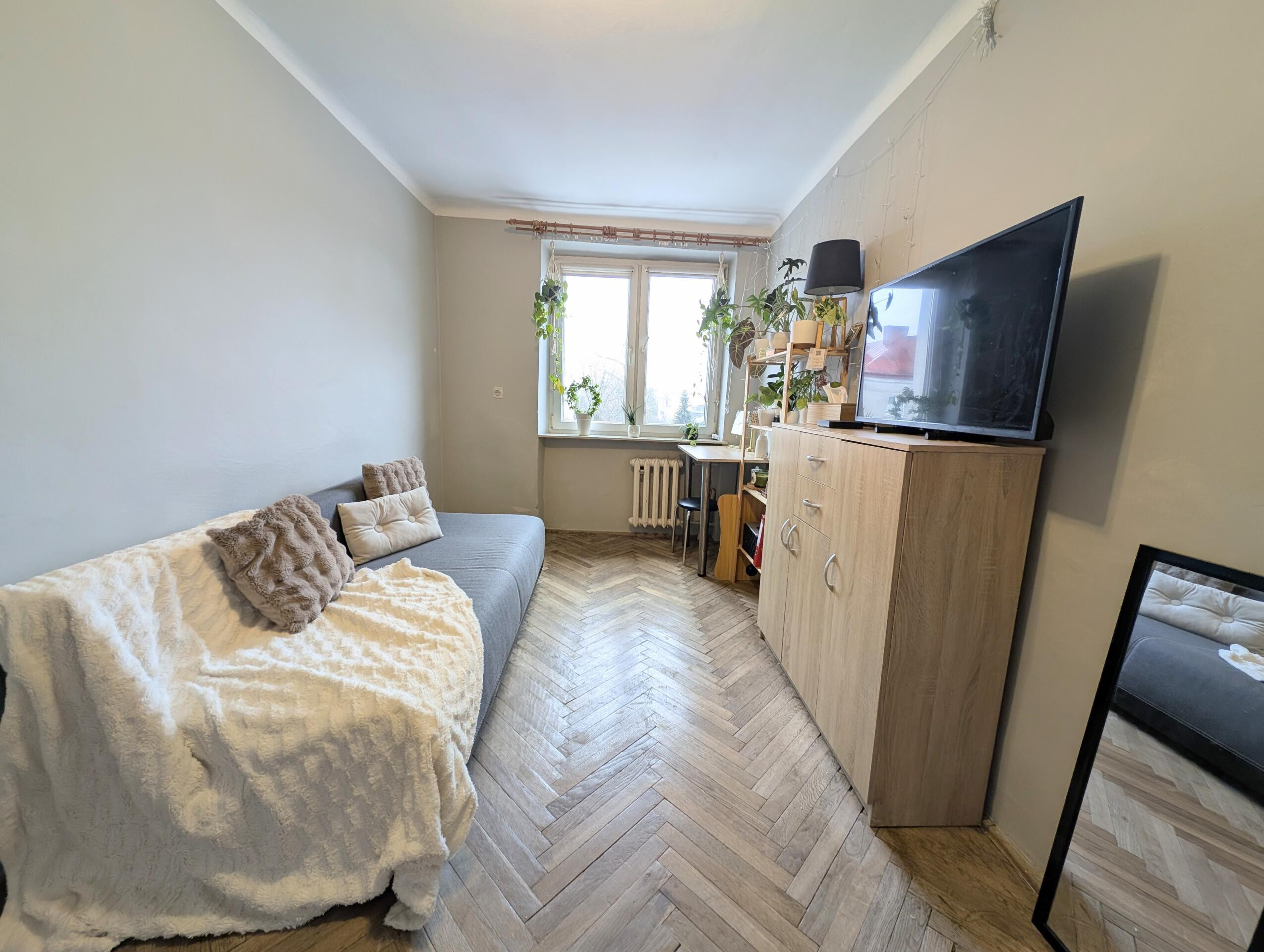 Mieszkanie jest dwustronne (ekspozycja: wschód/zachód) jasne i funkcjonalne. Łazienka po remoncie wymienione instalacje hydrauliczne, instalacje elektryczne miedziane. Okna PCV. Otwarta kuchnia z płytą gazową, z możliwością stworzenia salonu z aneksem kuchennym, dwie osobne duże sypialnie. Na podłogach parkiet, ściany wymagają odświeżenia. Mieszkania wystarczy odświeżyć lub wyremontować wg uznania nowego właściciela.
