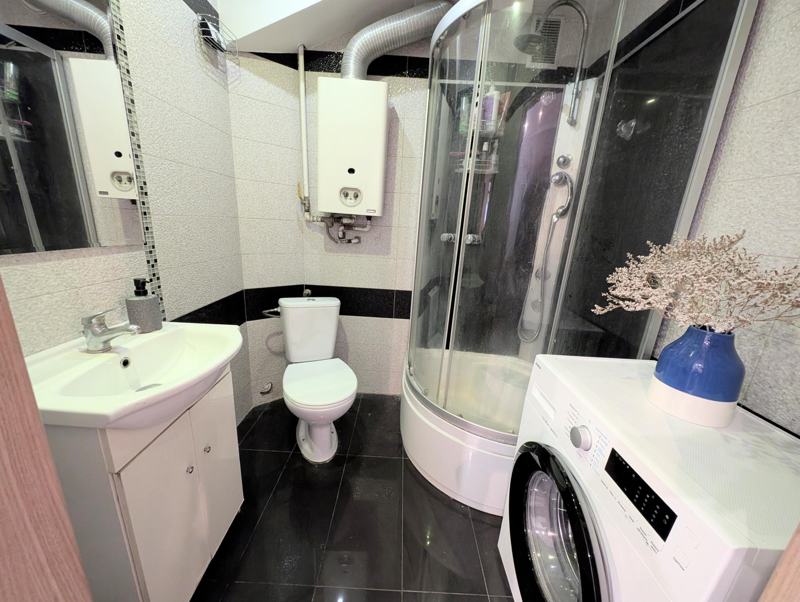 Łazienka z kabiną prysznicową i WC,