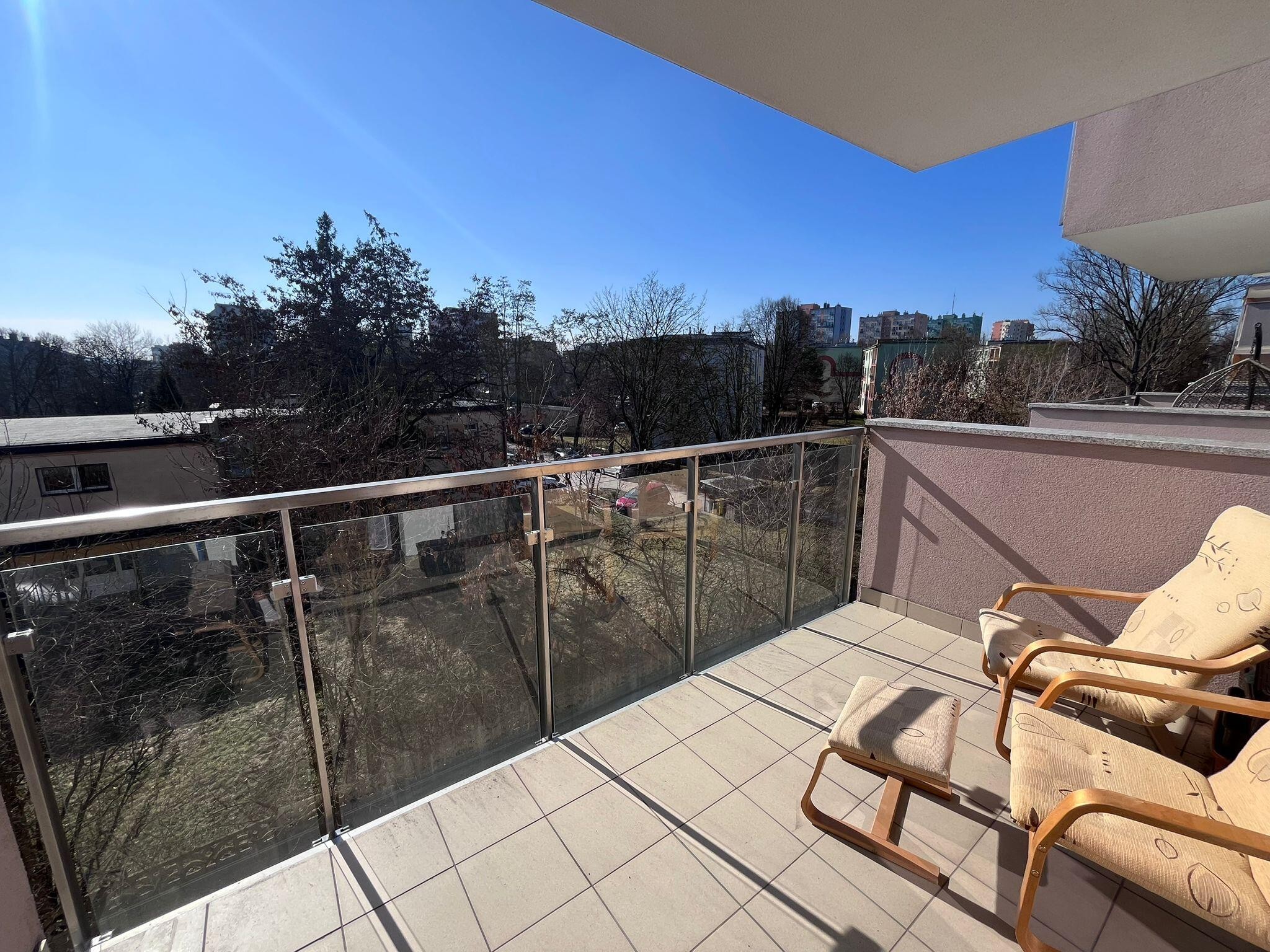 Duży balkon stanowi dodatkową przestrzeń do wypoczynku.