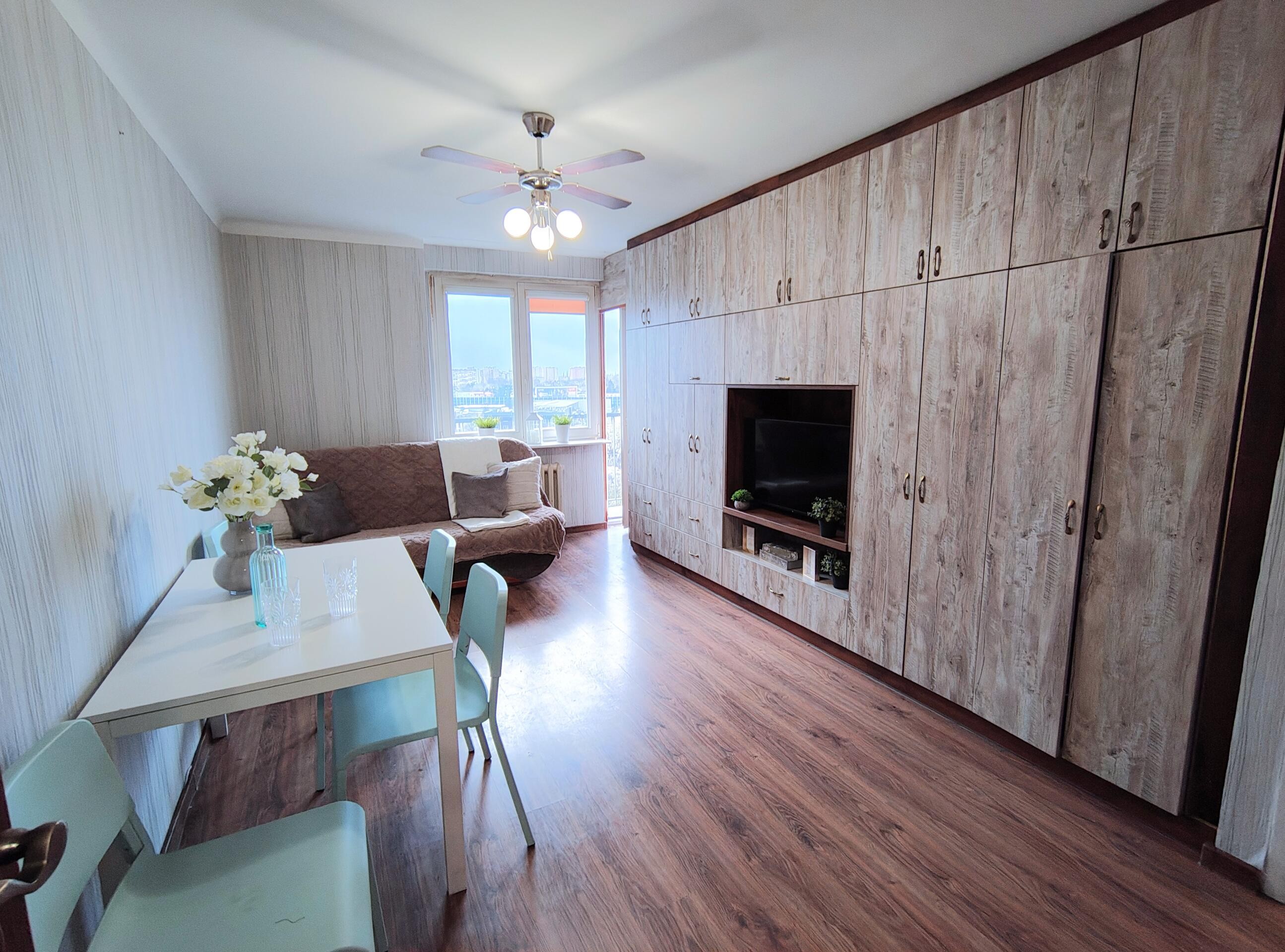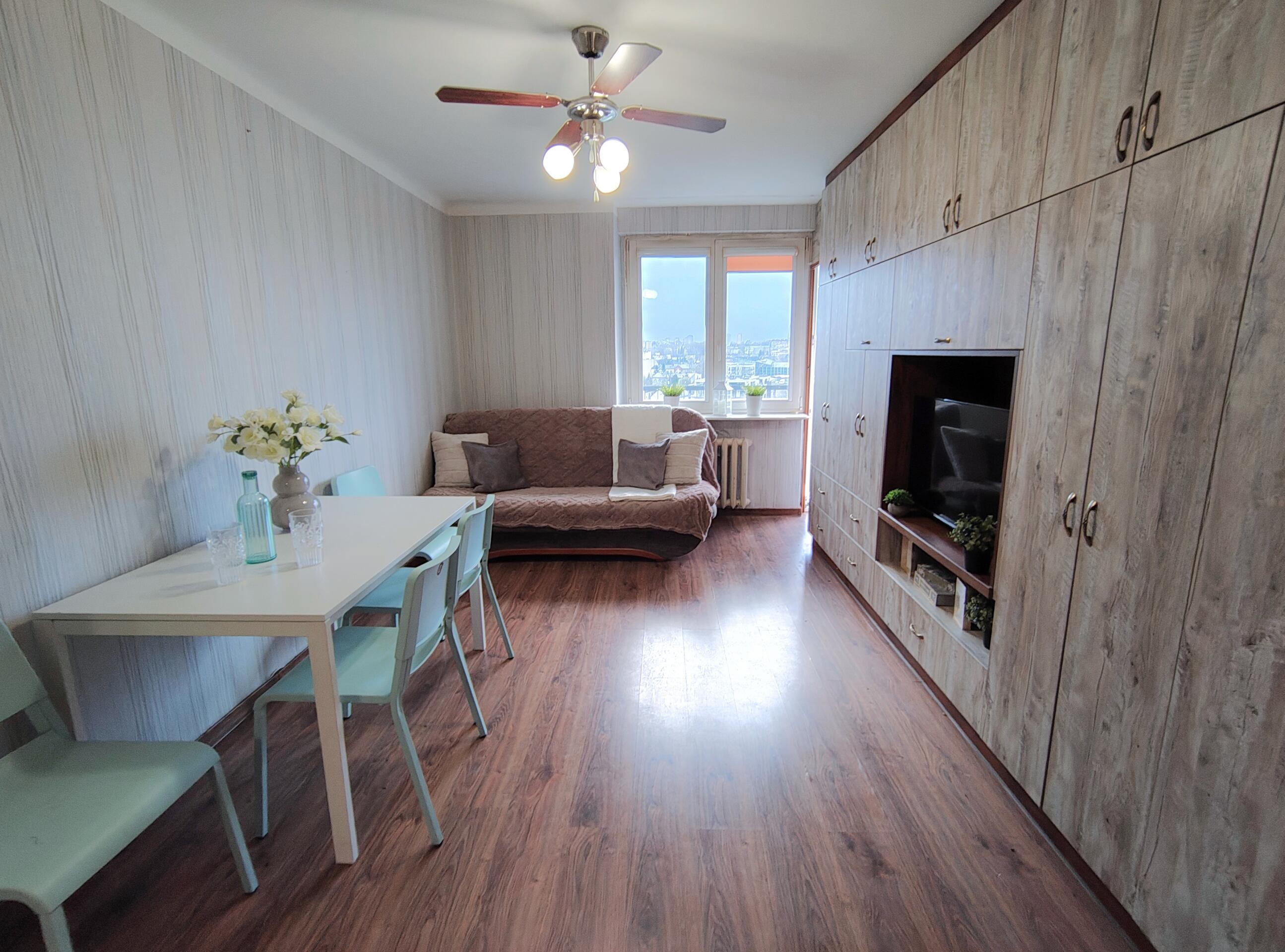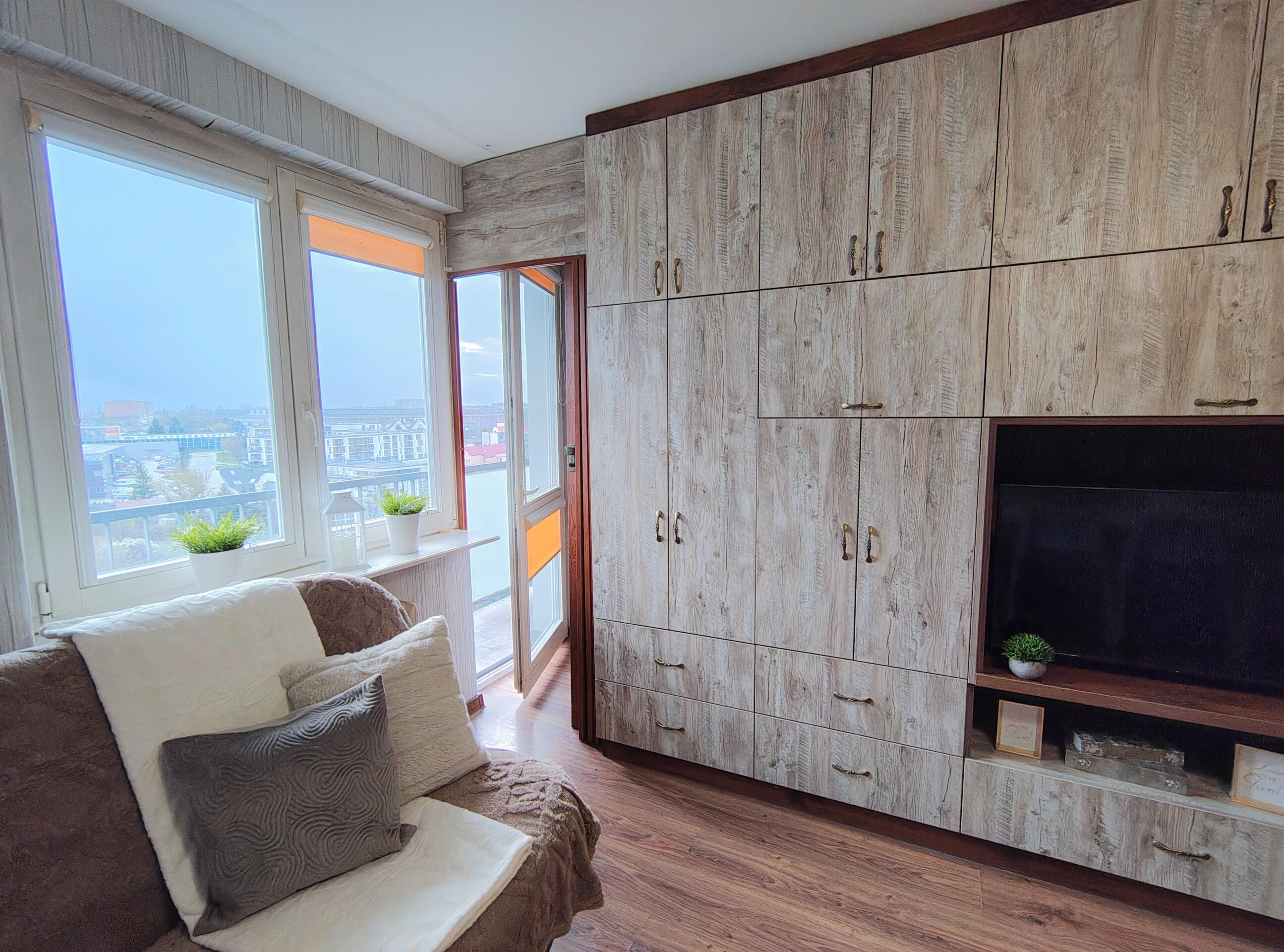 -jasny salon z wyjściem na loggię (piękny widok na panoramę miasta i tereny zielone - Sinicę),