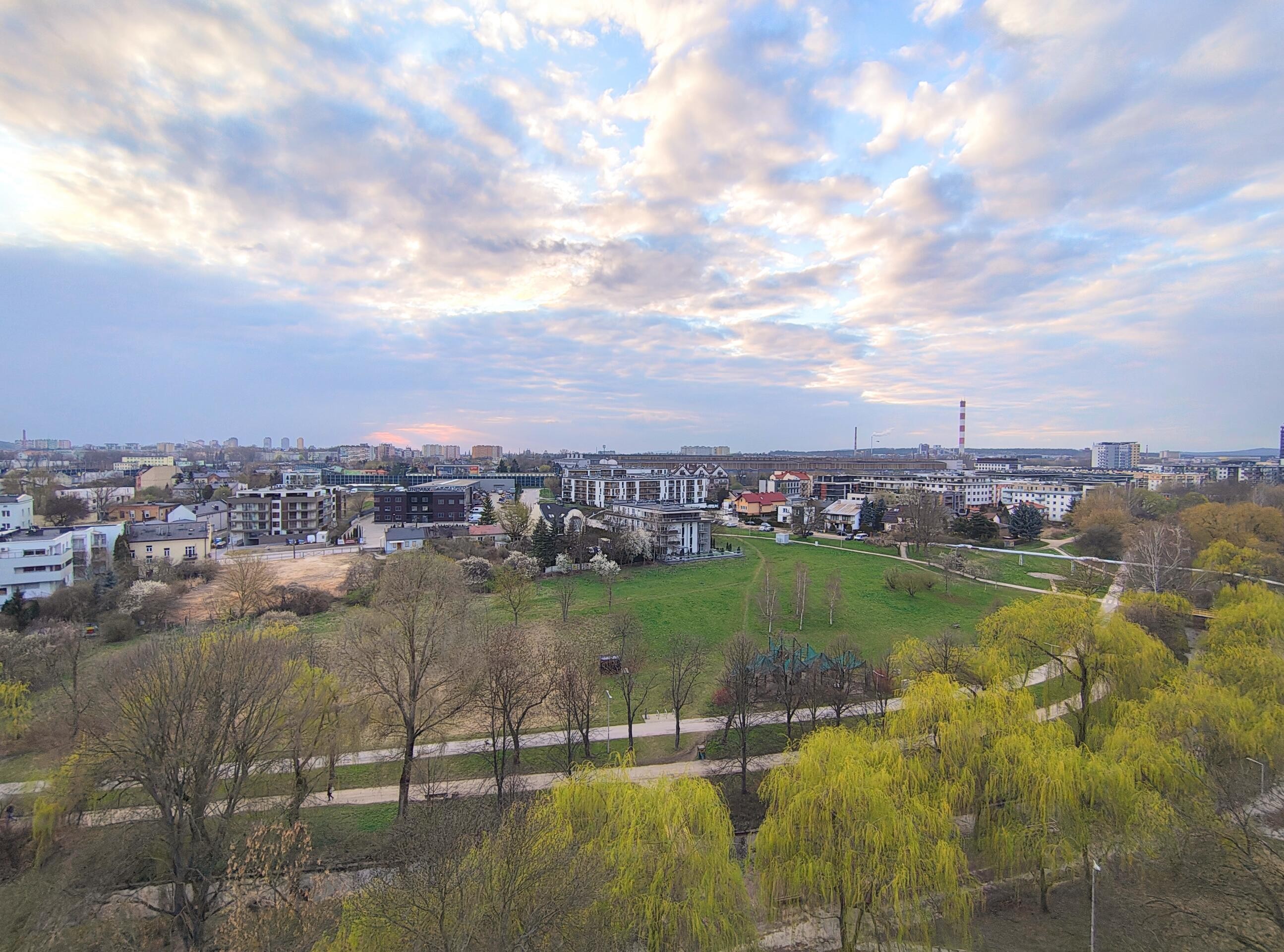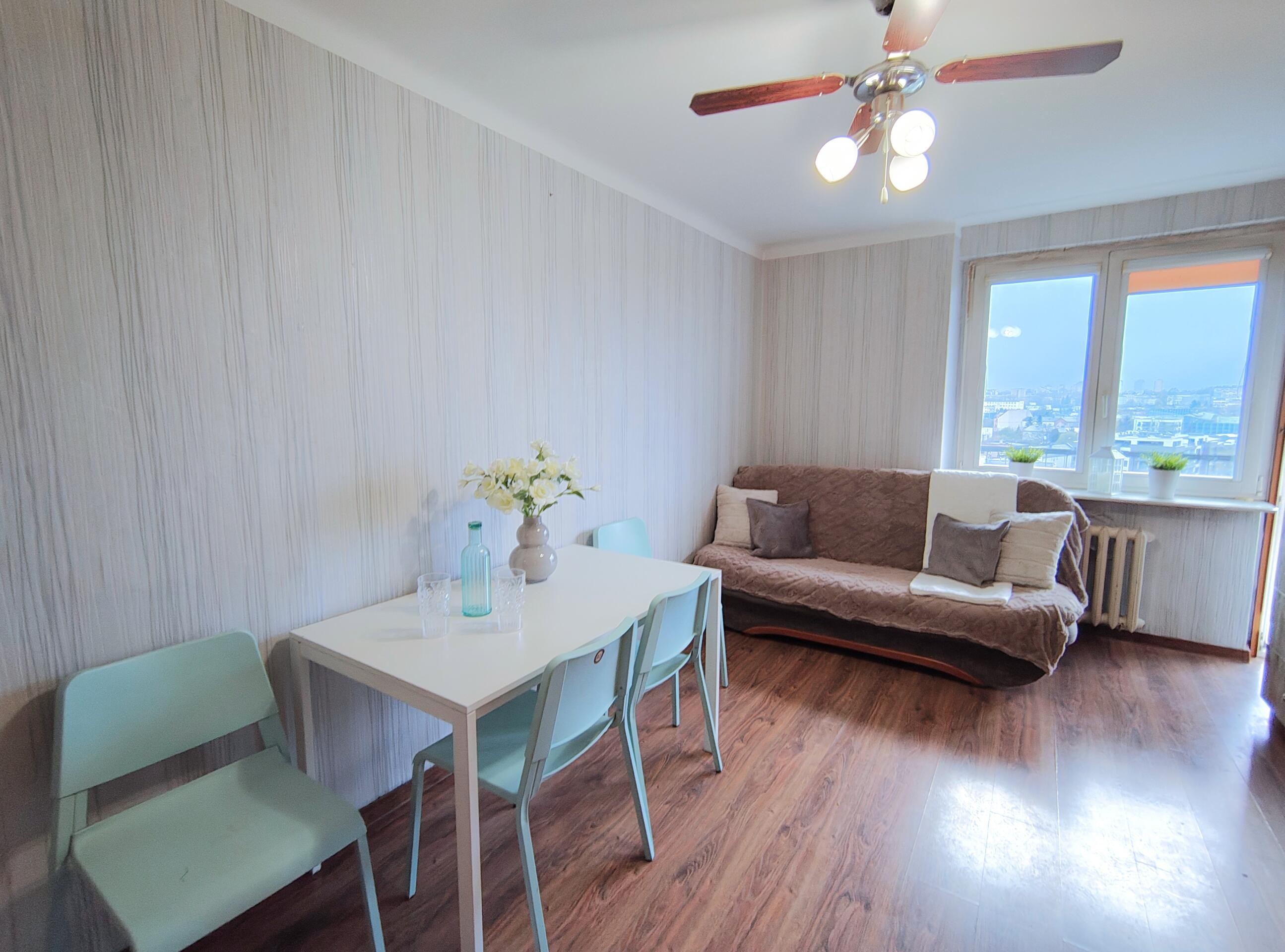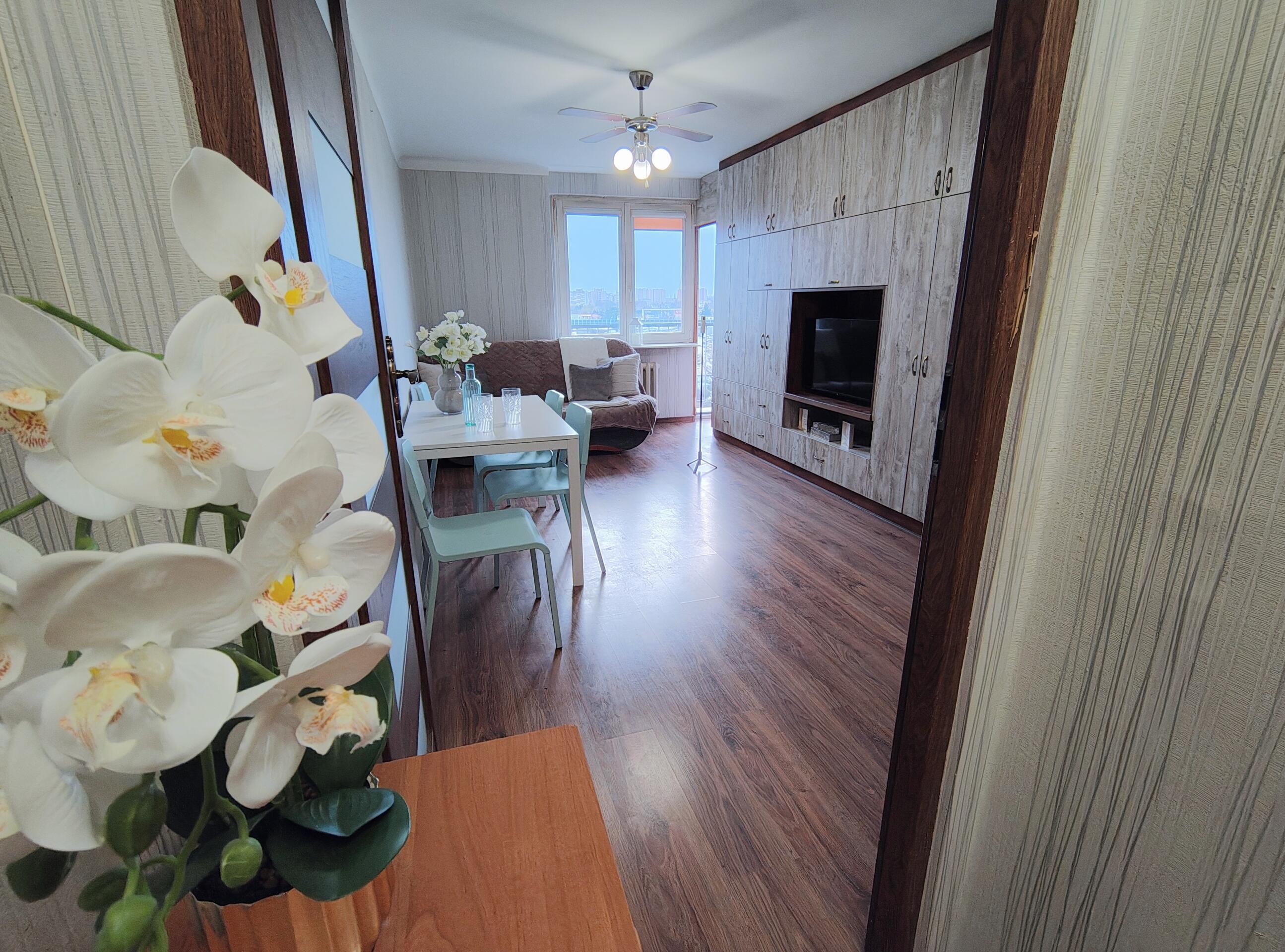 -jasny salon z wyjściem na loggię (piękny widok na panoramę miasta i tereny zielone - Sinicę),